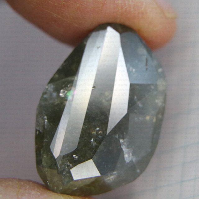 ![]() Enlarge Photo / Additional Photo This Disc Shaped Polished Diamond is Black with a High White Core. The Core is visible from both the front and back, as well as various places on the side. 90%+ of the stone is Polished. Due to the fact that this Diamond has a very hard, tough, multidirectional grain, the polishing took over 6 months to complete. |