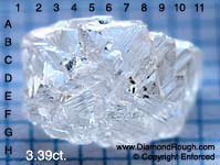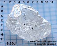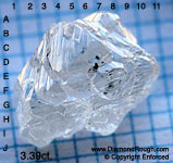 5.88ct. Highly distorted octahedron crystal. Background grid 2mm. The stone has not been acid cleaned since being mined. |